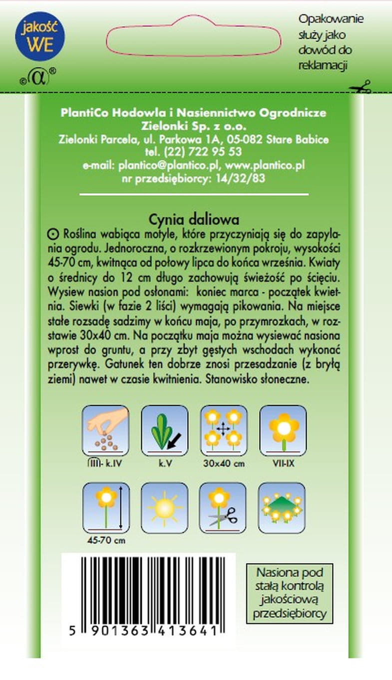 Roślina jednoroczna. Wymaga gleby żyznej, lekkiej, dostatecznie wilgotnej (pH 6,5 7,5).Stanowisko słoneczne. Nasiona wysiewamy do półciepłego inspektu. Optymalna temperatura siewu 18˚C, a po wschodach 14˚C. Siewki, gdy tylko wytworzą pierwszy właściwy liść, pikujemy. Rozsadę na miejsce stałe wysadzamy w trzeciej dekadzie maja. Można też wysiewać nasiona w maju wprost do gruntu, wtedy później kwitnie. Zastosowanie: kwiaty cięte, rabaty, obwódki, kwietniki. Ilość nasion w 1g: 120-200 szt. Gramatura: 1g.