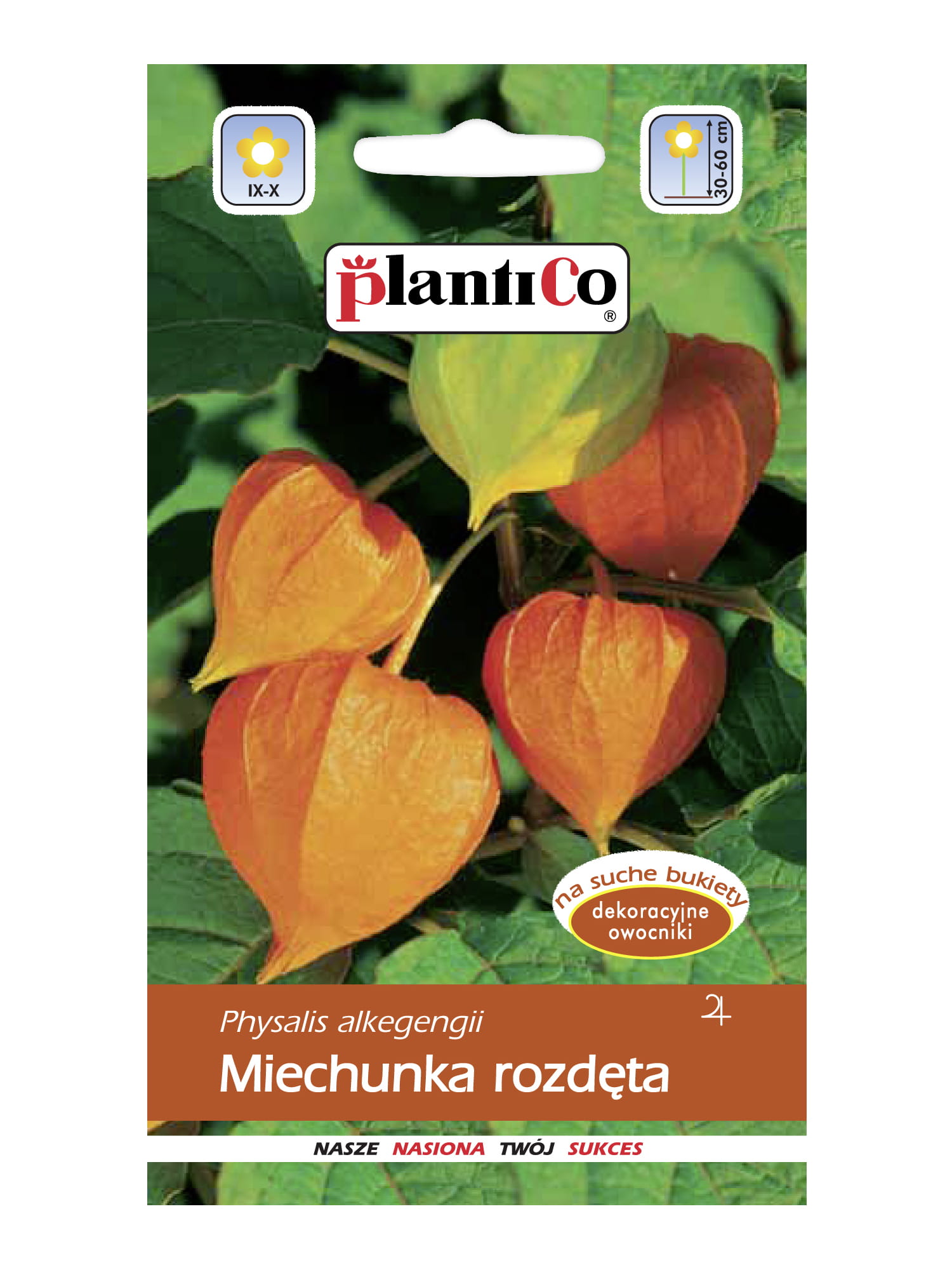 Bylina o podziemnych kłączach. Kwitnie w następnym roku po posadzeniu. Kwiaty małe, żółto-białe. Dekoracyjne są owoce dzięki rozdętym, czerwonym kielichom dł. 3cm, które przebarwiają się na pomarańczowo jesienią. Polecana na cięte pędy wraz z owocami i jako dodatek do suchych bukietów. Wymaga gleby próchniczej, żyznej, zasobnej w wapń. Nasiona wysiewamy w marcu-czerwcu na rozsadniku. Rozsadę na miejsce stałe wysadzamy w sierpniu-wrześniu. Pełny efekt ozdobny owoce uzyskują we wrześniu-październiku. Ilość nasion w 1g: 600-700 szt. Gramatura: 0,5g.