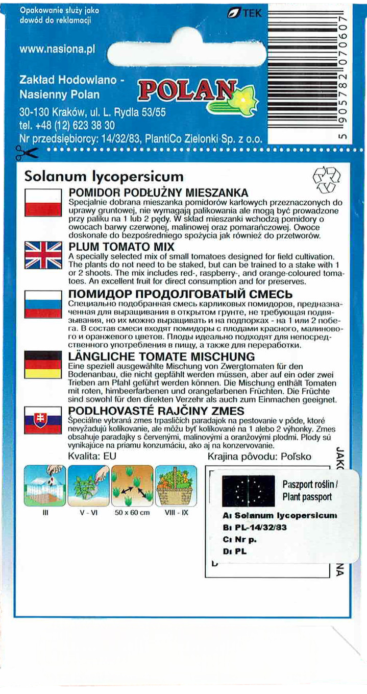 Pomidor gruntowy Mieszanka pomidorów - podłużne